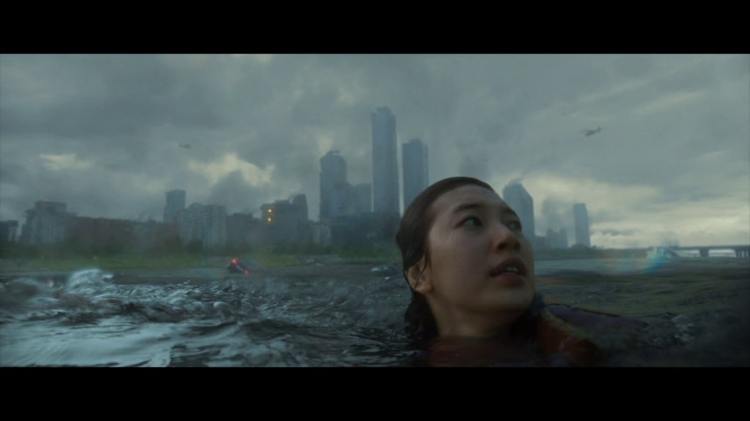 Meanwhile the heavily pregnant Choi has had enough of being left on her own and decides to leave town as part of the mass evacuation of South Korea. In doing so, she gets caught up in a tsunami on a large bridge and is washed into the sea. From there she gets on a bus heading for the boats leaving the country and ends up sitting next to Kang, who having learned of America’s plans to kill the Korean team has seemingly given up and decided to leave himself fearing for his life. As the two end up getting caught in a crowd control problem at a passport control boarder, they learn of each other’s connection to Jo and realise that they could actually be more helpful. Together with Jeon, they organise a mission to steal some vital information and then relay it to Jo, hoping he is still alive and can then place the nuke in the right place.