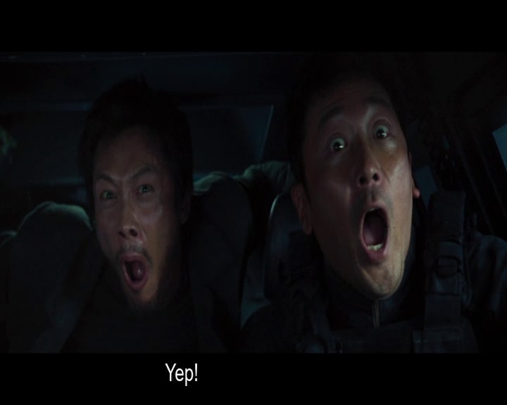 Jo is asked to head a team of soldiers to lead a mission to steal some nuclear warheads and throw them into the base of the volcano to shut it up. This questionable science is made possible from duo Kang and Jeon who aren’t quite sure if the plan will work. They also aren’t sure exactly where should be best, much to the annoyance of Sergeant Min. En route, they also need to find and release Lee Byung-Hun – an outlaw with a chip in his head. My poorly subtitled version of the film may have missed exactly why he is required. I think it is because he is combat experienced and knows his way around a nuke. As you do…